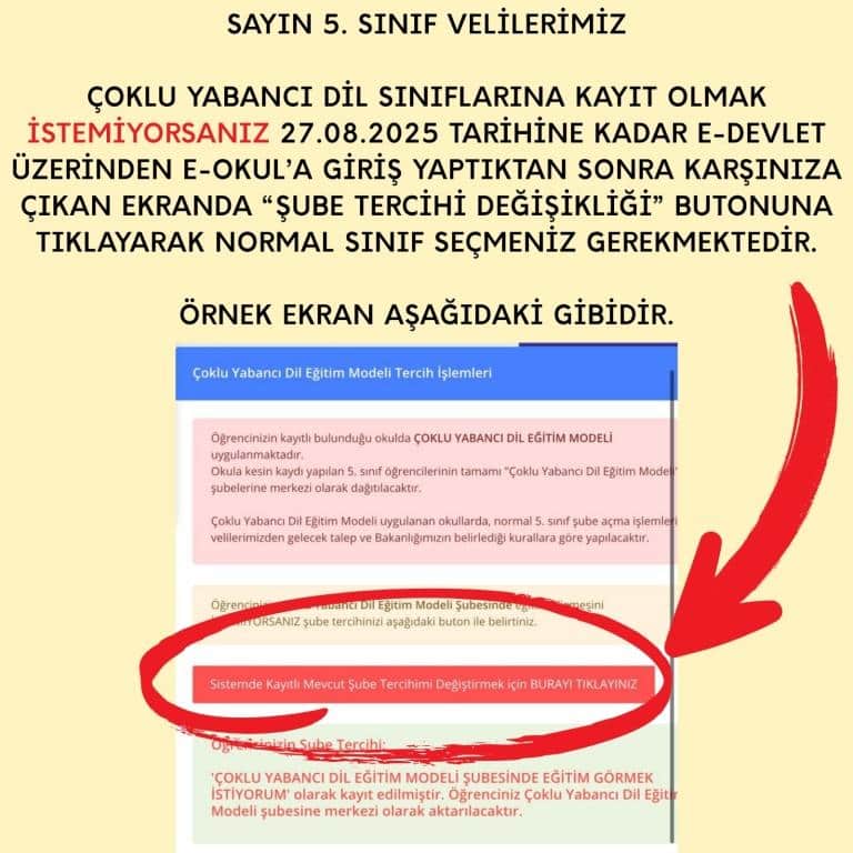 OKULUMUZ 2025 2026 EĞİTİM ÖĞRETİM YILINDAN İTİBAREN ÇOKLU YABANCI DİL UYGULAYAN PROJE OKULLARINDAN OLMUŞTUR.BUNUNLA İLGİLİ İŞ VE İŞLEMLEERİ İÇEREN BİLGİ NOTU HABERİMİZDEDİR.